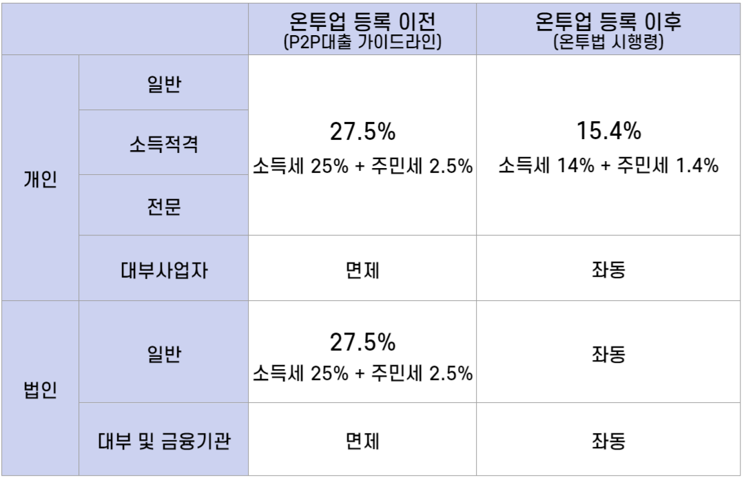 ※ 당사의 온투업 등록 시점인 2021년 8월 26일 이후 지급되는 이자에 대한 세금부터 적용됩니다.