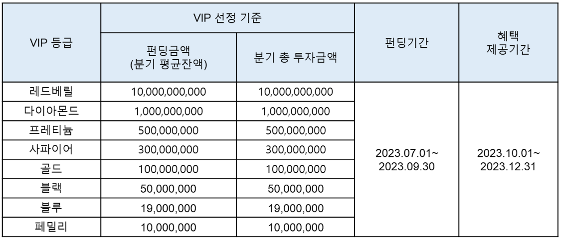VIP선정 기준 및 혜택 변경사항